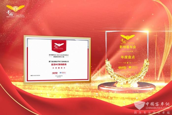 当天,影响客车业年度盘点评选结果正式揭晓,厦门金龙联合汽车工业有限公司勇夺2024-2025年度“客车行业品牌成就奖”,金龙MC陆地航母与金龙车路云协同一体化智能车载终端分别斩获“高端商务客车之星”和“客车技术创新应用成果奖”,用实力领跑中国客车业。