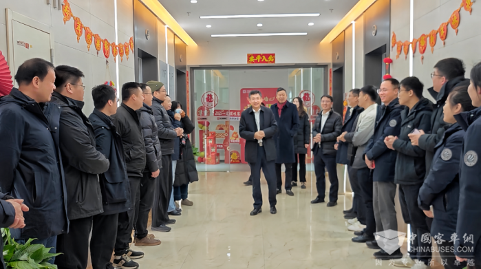 在慰问活动中,肖高华强调2025年是“十四五”规划的收官之年,也是系统谋划“十五五”规划、推动进一步全面深化改革的关键之年。面对新形势、新任务、新挑战,新的一年,大家要以饱满的热情、务实的态度、良好的作风、蛇行千里的劲头扎实开展工作。营销中心、专用车事业部要抢抓机遇,跑好开年“第一棒”,全力奋战“开门红”;海外事业部要积极构建具有中车特色的海外竞争优势,实现销售、利润双“倍增”计划目标;技术中心要围绕关键核心技术,统筹策划,集中攻关,结合市场需求打造“网红”产品;同时针对专用车、公路车研发的电驱动新技术,要加快试验验证,尽快实现可投放市场;客户服务中心要加快推进数字化建设,为全生命周期“产品+”新模式奠定基础。