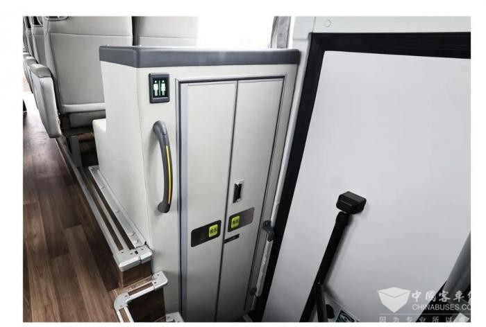 如此豪华的旅团客车怎能少了随车卫生间,车厢内部卫生间设计紧凑,与飞机同款,方便实用。值得一提的是,凭借13.7m长的车身,H13Pro能够多样化的设计布局,根据不同的旅游线路和乘客需求,灵活调整服务设施和座椅类型,卫生间、冰箱、休息舱自由搭配。无论是安排舒适宽敞的VIP座椅,为乘客提供极致的出行体验,还是在一些特殊需求下,增加座位数量以满足更多乘客的出行,H13Pro都能轻松实现。这种空间上的灵活性可以更加精准的适配个性化客运需求,无论是长途旅游、城市观光还是团体出行,都能完美胜任。