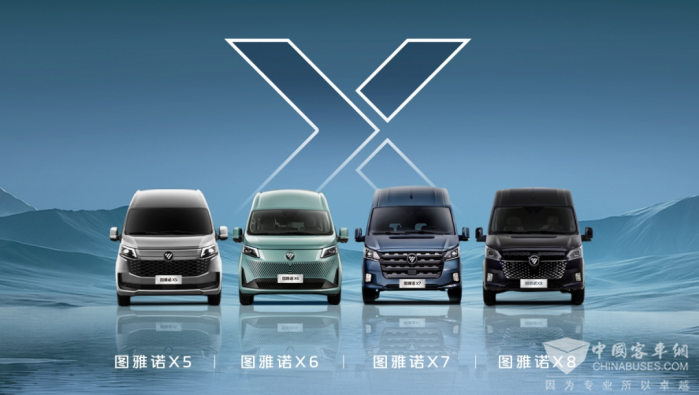 X5上市之际,图雅诺X新家族焕新发布。其中X5、X7主打城市多用途货用场景,为用户带来高效、便捷、智能的使用体验。X6、X8作为客运车型,主打舒适性和驾乘体验感,为旅游通勤、定制客运等场景专项开发。“X”不仅是一个符号,更是一种突破创新、追求无限可能的信念,是对全球VAN类车型智能化、新能源引领发展与卓越追求的象征。