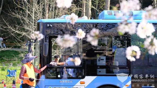 赏樱定制专线与接驳车辆以中车电动的C10纯电动公交车为主,车辆兼具稳定性、安全性、舒适性、低噪性,让乘客能够快速、为乘客提供了清新、宁静的乘车环境;便捷的上下车设计,有序地乘车,疏散候车点压力;宽敞的车厢可以容纳更多游客,提升运营效率;强劲的动力使得在各种路况下都能稳定行驶,如行云流水般畅快无阻;高效续航、快速充电的优势,更能保证在需求量高的情况下“不掉线”,随时待命为游客提供源源不断的出行服务。其凭借舒适的乘坐体验、卓越的性能表现以及便捷的交通服务,赢得了游客们的一致好评。