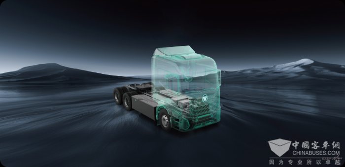 技术创新层面,福田汽车秉持自主研发理念,围绕纯电、混动和氢燃料三大技术路线,构建起完善的核心技术体系。三电技术领域,配备福田爱易科111kWh轻型动力电池、轻型电力电子单元(PEU)、4.5T轻型电驱桥的全自主三电应用的轻卡产品已成功下线,为用户带来绿色、智能、高效的运营体验;混动技术方面,FHS混动技术平台集成混动专用发动机DHE、专用变速器DHT、混合动力系统DHP等模块,基于该平台,欧曼混动重卡实现硬件40余项前沿技术集成与软件65项策略优化,节能超10%、起步加速性能提升30%;氢燃料技术领域,福田汽车布局大功率燃料电池、热管理等关键核心技术,自主研发的300kW氢燃料电池发动机实现“功率、效率、寿命”三重突破,效率超63%,具备-35℃极寒启动能力,质量功率密度达811W/kg,处于行业前沿水平。