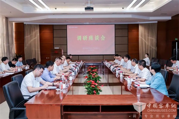 在调研座谈会上,金龙党委书记、董事长侯晨磊围绕推动金龙从“规模扩张型”向“质量效益型”转变的目标,从公司战略规划、组织变革、产品开发、国际化破局等方面进行了详细的汇报,总经理丁明彬汇报了企业生产经营情况以及下一步在质量控制、效益提升等方面的思路举措。