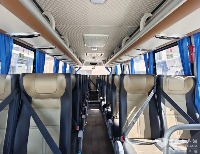 车辆圆润流畅的“星际弧线”设计与雪山草原相映成趣。大容积贯通式的行李舱,空间多达2.6m³,较常规车型扩容25%,轻松容纳游客行李。35+1的座椅布局,既满足团队出行需求,又兼顾散客舒适体验,显著提升景区服务品质。