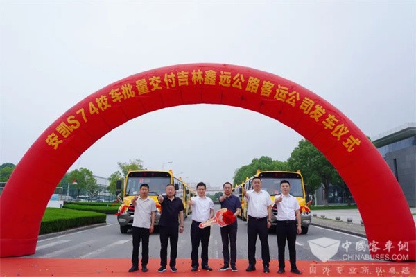 全力守护吉林学童学途 安凯S74校车批量交付鑫远客运