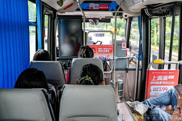 金旅星辰巴士也没让鹰潭公交失望,一上线就受到乘客的好评,除了外观可爱、符合年轻人的审美,纯电动车型、提供12个超宽软座、配备USB充电接口、1.2米宽的电动塞拉门方便上下车,都让网约公交的体验感更好。
