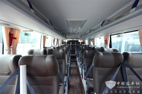 BJ6906采用商务美学外观,内饰设计儒雅高端,车内采用2+2布局的人体工学J型座椅,配备USB充电口、阅读灯等人性化配置,充分满足乘客高品质出行需求。同时,车辆驾驶区配备全气囊驾驶员座椅,搭载智能车联网系统、电子驻车、智能温控空调和一系列安全配置,让驾驶体验更加轻松愉悦。另外,车辆还搭载三重降耗设计,通过优化传动效率、轻量化车身和低风阻设计,使整体节油率超过10%,为企业高效运营保驾护航。