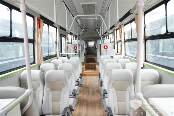 福田欧辉BJ 6127车内采用低入口、一级踏步结构,配备皮质座椅、宽敞通道和空调系统,为乘客提供舒适乘坐体验。针对墨玉县当地风沙大、气温高的特点,车辆采用高密封性车门车窗设计,有效阻挡风沙;电池配备特殊防护装置,确保高温环境下安全平稳运行。此外,车厢设有前、中、后三个应急门,保障突发情况下的快速撤离,全方位守护乘客安全。