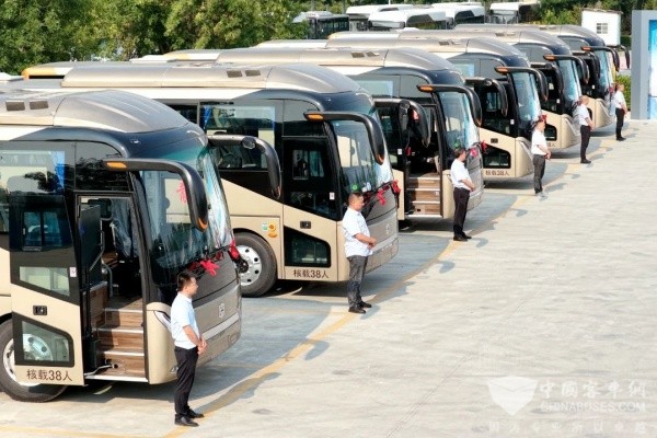 江南网页版2025年7月16日获悉,继2024年采购中通H系首批旅团客车后,近日,中通批量H系旅团客车再次交付湖南龙骧交通发展集团有限责任公司(以下简称“湖南龙骧集团”)。交付车辆涵盖H9、H12两款热销车型,将为湖南旅游客运市场注入新活力。