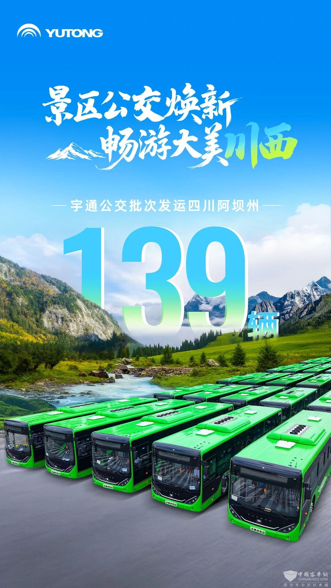 随着这批139辆宇通公交陆续投运,将为九寨沟、四姑娘山、达古冰川等景区观光提供更加高效、智能的出行体验,为壮丽川西的旅游动脉注入全新活力。