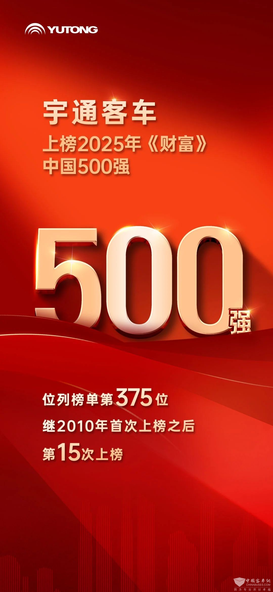 《财富》中国500强榜单,采用与《财富》世界500强一脉相承的制榜方法,覆盖上市与非上市企业,是观察中国经济脉动与企业竞争力的权威风向标。多次上榜,不仅是对宇通市场地位的认可,更是宇通长期坚持高质量发展道路的成果体现。