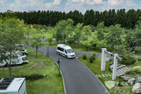 7月28日,媒体品鉴团来到宇通房车营地,通过沉浸式场景体验,进一步探索天骏V6E的运营适配性。在蓝天白云的自然环境中,天骏V6E的灵活性和舒适性愈发凸显,媒体品鉴团纷纷举起设备,记录这款“既能扛生意,又能装诗意”的全能车型。