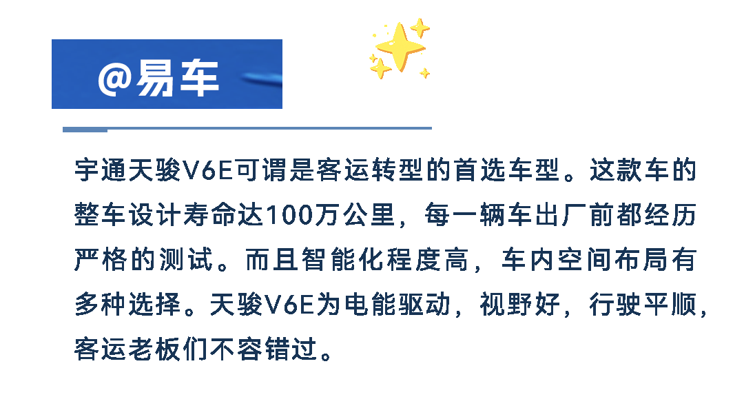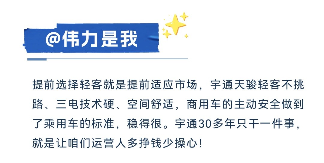 立足市场需求,宇通天骏将充分发挥大中型客车可靠耐久、驾乘舒适、服务保障等方面优势,持续为客户量身打造“高端舒适、安全可靠、出行无忧”的差异化产品。