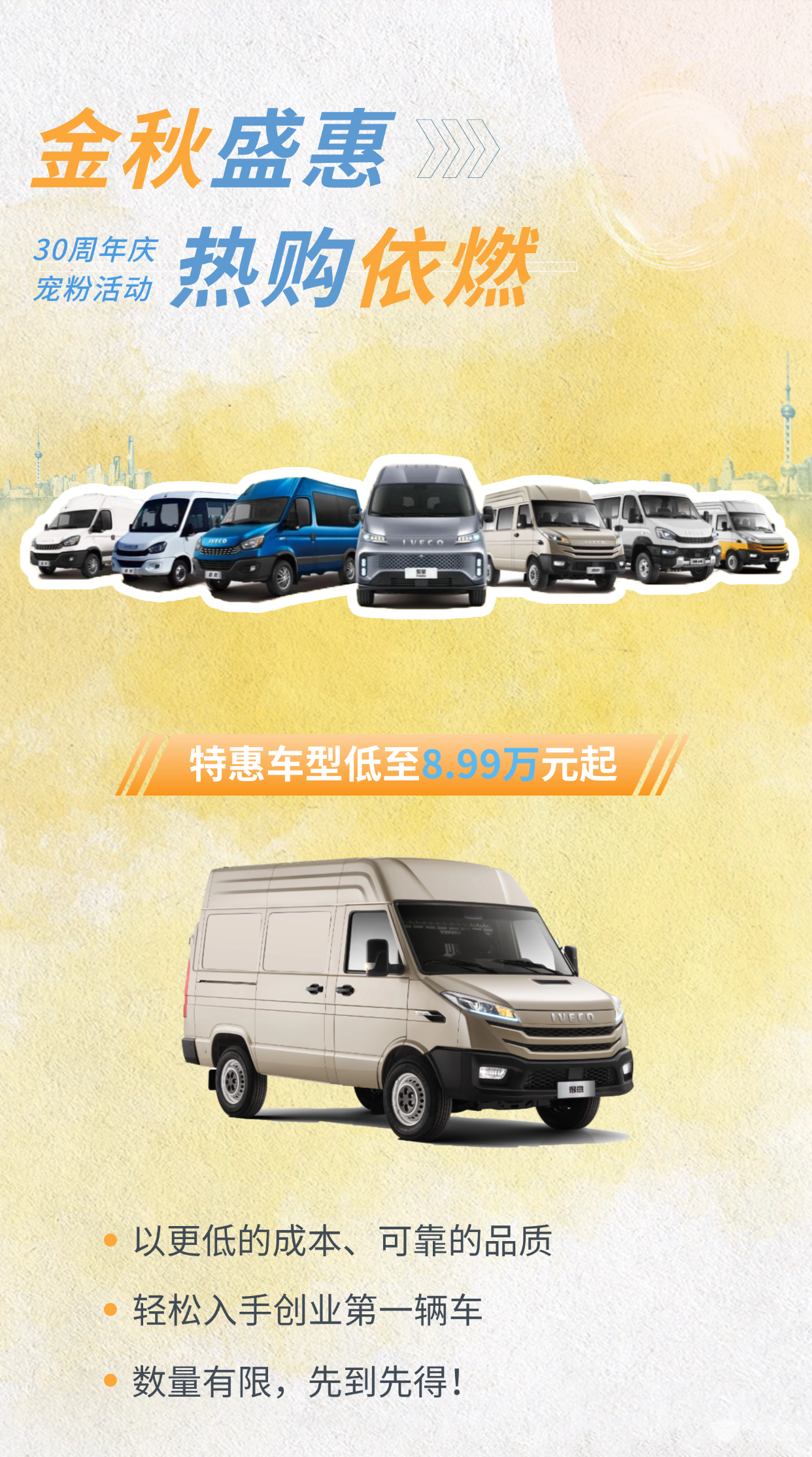 30周年庆宠粉活动,特惠车型低至8.99万元起·以更低的成本、可靠的品质,轻松入手创业第一辆车,数量有限,先到先得!