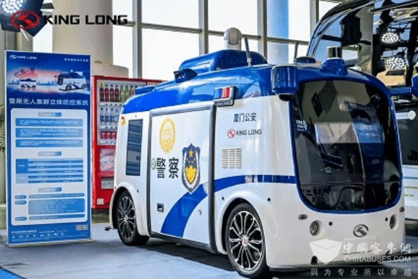 金龙自动驾驶安防车搭载L4级自动驾驶系统,具备实时定位、避障、自动泊车功能;支持24小时动态巡逻和360°无盲区监控;具备人脸识别、车牌识别、异常行为识别分析能力,最远识别距离达380米,适用于警务、物流、园区、智慧工厂等多元场景。