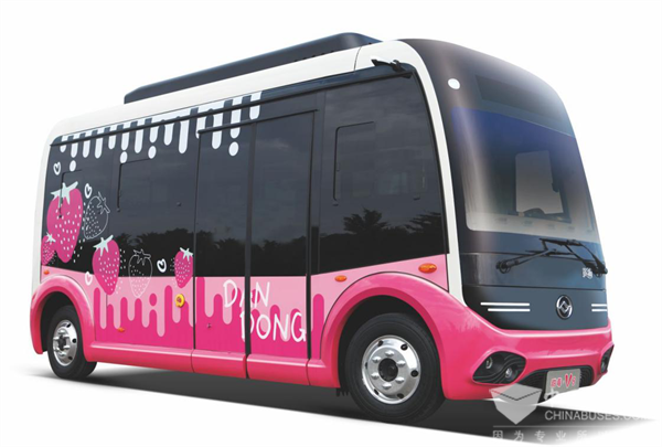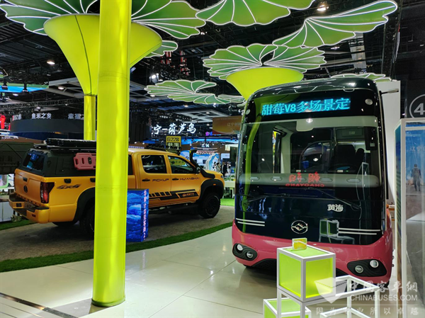 展出的“甜莓V8”(DD6600 EVD1)纯电动低地板城市客车,集安全、智能、环保与多场景应用于一体,是城市公共交通与定制化出行的理想之选。