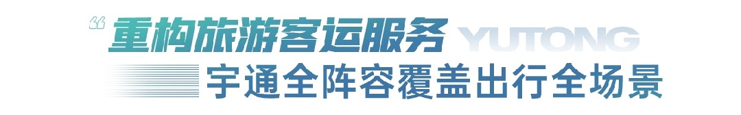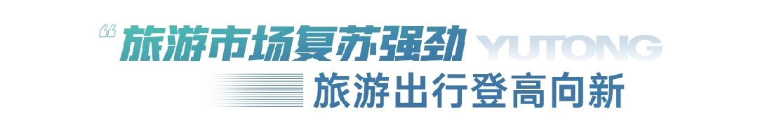 以“质”谋发展,向“新”再出发。当下,交通运输与文化旅游正经历着前所未有的深度交融,交通工具的旅游功能也在不断强化,作为行业的中坚力量,宇通客车正在以多元产品矩阵、全场景解决方案匹配新趋势、新需求,助力旅游出行行业高质量发展。未来,宇通客车将保持创新,持续突破技术与场景的边界,打造超越期待的美好出行,做您最可靠的高价值伙伴,与您携手书写全球智慧出行的新答卷。