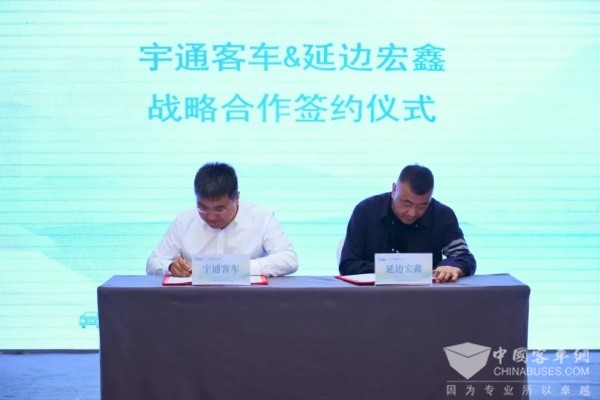 活动现场,宇通创新的产品与解决方案得到了旅游客运企业的高度认同,延边宏鑫旅游运输有限公司现场与宇通客车达成了深度合作,并进行了战略签约,为双方共同推动当地旅游交通高质量发展搭建起坚实合作桥梁。