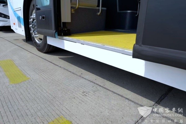 创维汽车采用低地板结构,通过单级踏步显著降低乘客登乘高度。该设计使乘客仅需一步即可轻松完成上下车,有效提升通行效率。特别配备的轮椅区应用毫米级精准对接技术,实现车辆与站台的高效平顺衔接,为轮椅使用者、长者及孕妇等特殊群体提供更加自主、便利的出行条件,充分体现“让爱无碍”的产品理念。