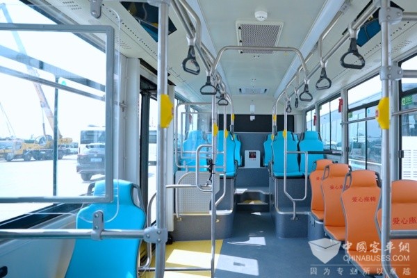 座椅应用航空级零重力发泡工艺,创新八区独立承托结构,并获CNAS人体工学认证,为乘客提供优越的乘坐舒适性。整车配备VOC空气净化系统,可有效控制车内空气质量,甲醛含量为零。从通勤高峰到日常出行,每一处细节均诠释“移动会客厅”的设计构想,使公交车成为城市中穿梭的“第五空间疗愈站”。