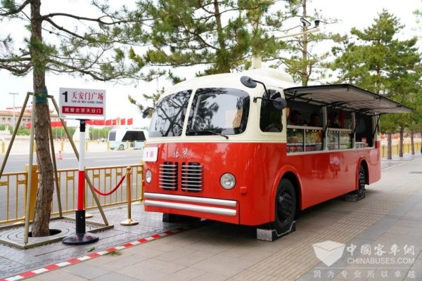此次上新的便民服务车,在设计上延续城市记忆、传承首都文化,成为北京城市文化的新地标。外观由中央美术学院团队精心设计,米色搭配复古红色,与红墙相匹配,车头的“北京”字样与车尾的“为人民服务”相呼应,庄重大气、古朴沉稳。