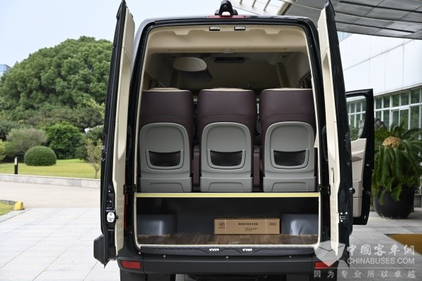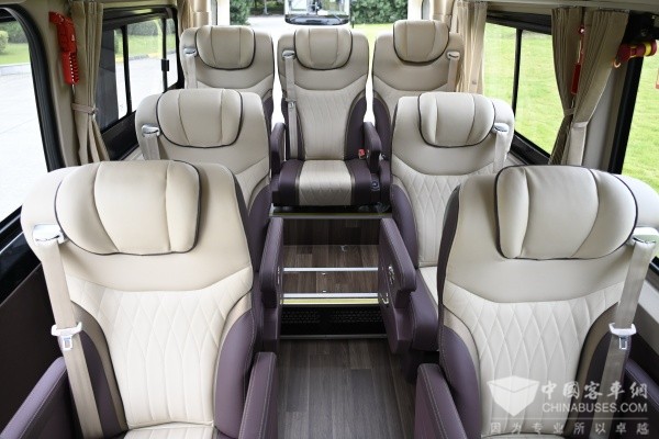 司乘分离的特点,搭配上C照可驾的独特优势,完美契合当前盛行的“青甘大环线”等定制化小团出行需求,让4-8人小团旅客在旅途中尽享尊贵体验。在乘坐舒适性方面,车辆搭载的1+1大商务豪华座椅集通风、加热、气动按摩功能于一身,叠加电动伸缩踏步、豪华踏步迎宾灯,让乘客从踏步上车开始即可感受“五星级”旅游,真正实现“全员VIP”的出行理念。