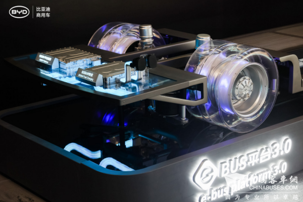 2025年9月,比亚迪正式发布第三代纯电动客车技术平台——e-Bus平台3.0,多项突破性技术引领行业:打造全球首个客车全域1000V高压架构,驱动、充配电等系统全面升级;自主研发全球最高的1500V碳化硅功率芯片;首创客车1000V电驱桥和电池底盘一体化技术;革命性搭载全球首创客车电池底盘一体化技术,将整车结构强度和电池防护能力拉到了全新的高度。