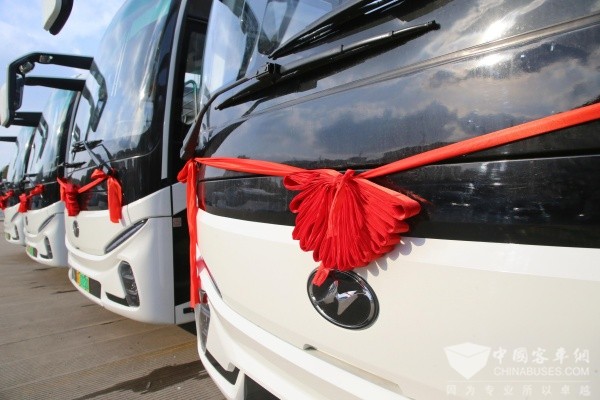 共筑区域出行新生态!批量苏州金龙新V系客车交付张家港港城汽运