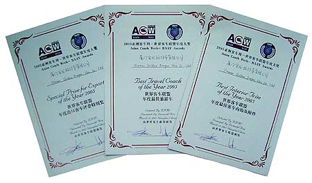【中国江南网页版讯】: "2005年世界客车博览会亚洲展览会"3月17日在上海新国际博览中心落下帷幕,这是中国客车行业最大规模的聚会更是无声比武场,参展商都想利用这次展览会展示05年的各种新品,在强强对比中突显自我。 金旅公司此次特地精选了3款外型美观、性能卓越的新款金旅牌客车出征客博会。XML6127E1是金旅公司独立开发的具有完全自主知识产权的全新造型,已申请多项专利。造型粗旷而顿挫鲜明,极具感染力。该车底盘全新设计,达到高二级标准,提高了整车性能和可靠性。可搭载不同发动机分别满足市场对于高一级、高二级产品的需求; XML6112UE1是金旅公司采用自制底盘最新设计制造的城市公交车产品,动力性好,性能安全可靠,环保性能优良,符合我国各城市公交特点,是一款性价比非常高的城市公交车;XML6606C5是金旅公司采用江淮专用客车底盘开发的商务客车。整个外观造型新颖,融合了东方美学和欧洲典雅风范,绝对视觉冲击效果。发动机前置,选用索菲姆共轨发动机,排放达欧洲III号标准。内饰豪华并加宽通道,真正做到了最大化的空间利用。 作为世界客车博览会亚洲展览会的重头戏,BAAV年度大奖评选一直以其专业性强成为亚洲客车工业关注的焦点,体现了获奖客车制造商的产品在全球客车制造领域所处于的领先水平。此次BAAV 奖项评选委员会由大部分来自世界客车联盟(BAAV)高层官员和诸多欧洲客车界鼎级技术专家组成的国际评选团以及中国公交、客运部门的权威人士组成,评选队伍具备国际化的专业操作水准,更具权威性和公正性。金旅公司及其生产的3款极具代表性的经典之作征服了整个BAAV 奖项评选委员会,在各项年度大奖的角逐中,荣获了年度最佳旅游车、年度出口客车评委特别奖、年度最佳客车内饰及附件三项大奖,成为颁奖典礼上的最大赢家。 在为期三天的2005年世界客车博览会亚洲展览会中,金旅客车再次风光无限。整个展台围满了前来参观金旅客车风采的观众,不仅有全国各地的参观者、各传媒的记者,还有国内其它客车生产厂家,更有慕名而来的外国客商。金旅车亮丽的外观、豪华而布置合理的内饰、优越的性能、独特的设计理念成为了讨论的焦点,活跃不停的闪光灯更令整个展台沉浸在一片灯海中。 金旅公司已然走在了中国客车制造业的前头,引领了国内客车发展的新潮流,在今年的世界客车博览会亚洲展览会满载而归,风光无限。