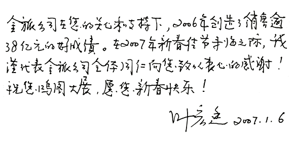 2007厦门金旅总经理叶宏廷 新年贺辞