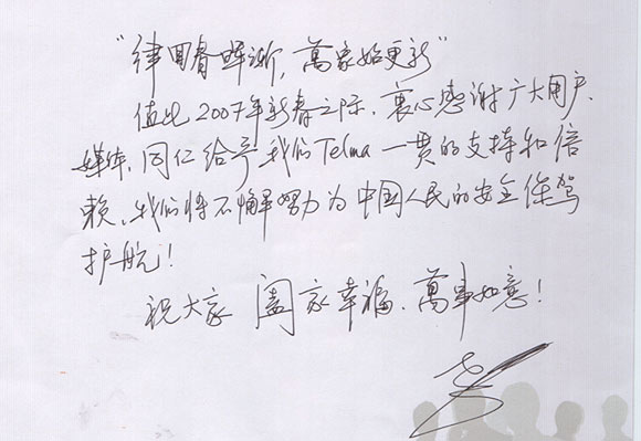 2007泰乐玛(上海)总经理李飞 新年贺辞