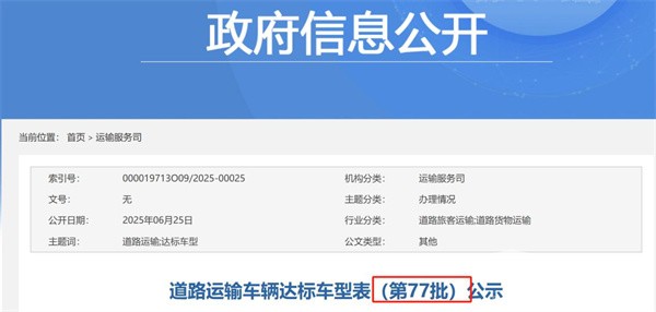截图1,交通部道路运输车辆达标车型表(第77批公示):