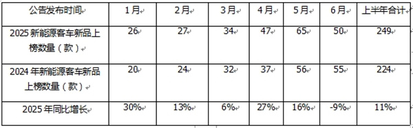 正是上述诸多利好政策的大力驱动,导致2025年上半年客车企业申报新能源客车新品的积极性同比增加。