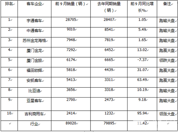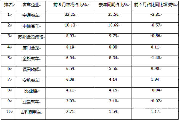 9月大中客车:“金九”坐实!宇通霸榜,海格\中通分列二三 安凯领涨