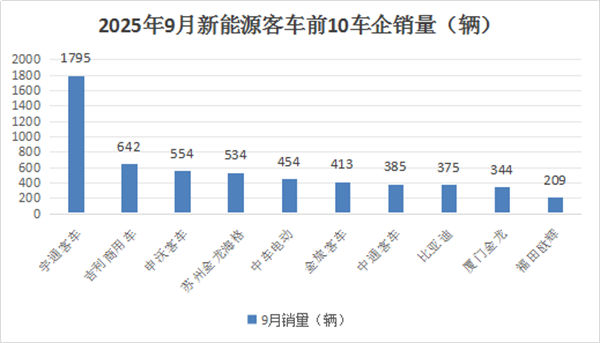 表1,2025年9月6米以上新能源客车销量前10车企销量及同环比(数据来源:中国客车统计信息网)