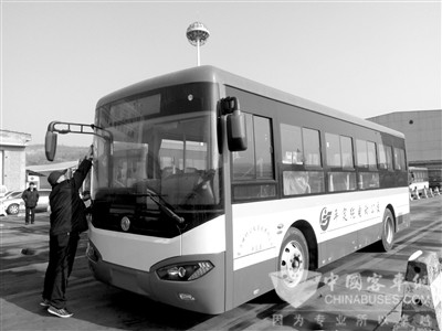 郭金维和相关人员一起到检车现场。在场的公交司机们对新公交车赞不绝口。