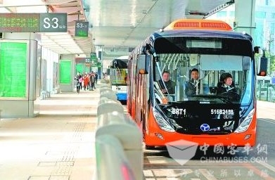 BRT1路配备了30台18米长的铰接式纯电动客车,大玻璃配明艳的橙色外壳,空车测试时,吸引了沿途市民的目光。