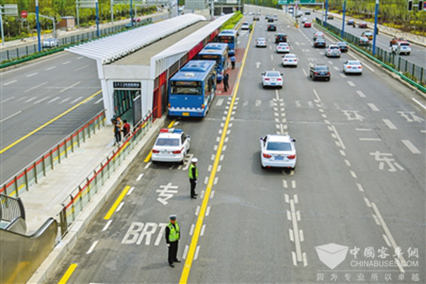 丰州南路站点,交警部门对快速公交试运行保驾护航