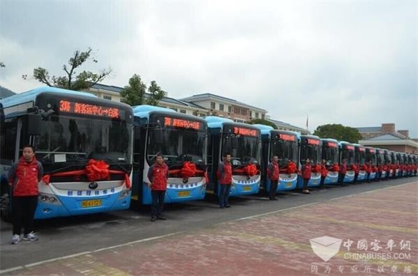 近日,武义城区第一批纯电动公交车在壶山小学门口迎来了首批乘客。据悉,武义城区第一批纯电动公交车已正式上线运营。纯电动公交车噪音小,行驶稳定性高,是一种“零”尾气排放、无二次污染的新型汽车,可以提高乘客乘车的舒适性、安全性。据武义汽运总公司相关负责人介绍,此次武义共投入1600万元购置了20辆纯电动公交车,以“新征程铁军号”、“新时代先锋号”为品牌,致力于为乘客提供更好的服务。