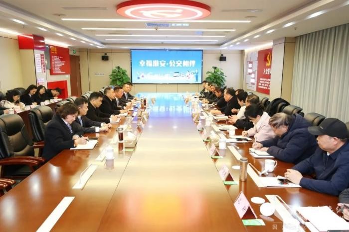 2024年12月11日上午,淮安市综合交通运输学会理事长唐道伦,副理事长皮兰平,副理事长兼秘书长朱从耀等一行莅临市交通集团现代公交集团公司城市公交板块,就公交党建引领暨企业文化建设等工作进行调研指导。市交通集团党委副书记、总经理庄德军陪同调研,淮安公交党委书记、董事长孙智敏,公司领导班子成员参加活动。