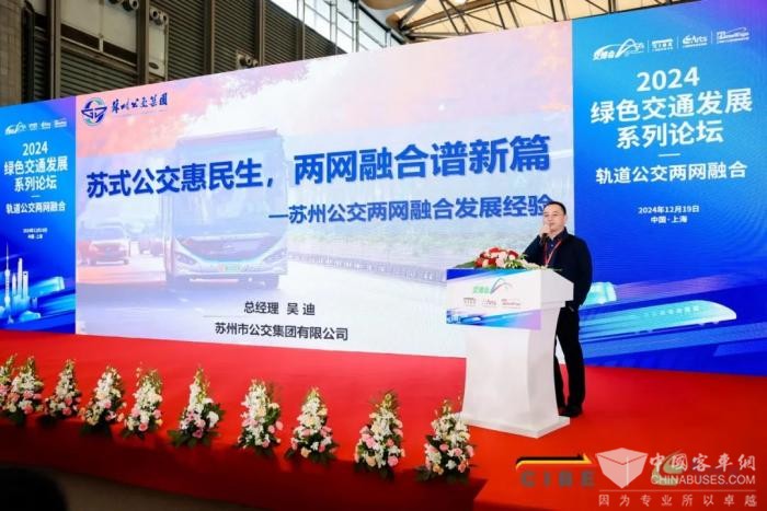 2024年12月19日,备受瞩目的“2024绿色交通发展系列论坛”在上海新国际博览中心盛大开幕。本次论坛由中国土木工程学会城市公共交通分会主办,吸引了众多行业专家和业内人士齐聚一堂,共同探讨绿色交通的未来发展方向。苏州公交集团党委副书记、总经理吴迪受邀出席此次论坛,并发表了题为“苏式公交惠民生,两网融合谱新篇”的精彩演讲,他深入分析了苏州公交推进“两网融合”的背景、举措和成效,赢得了现场专家和同行的一致好评。