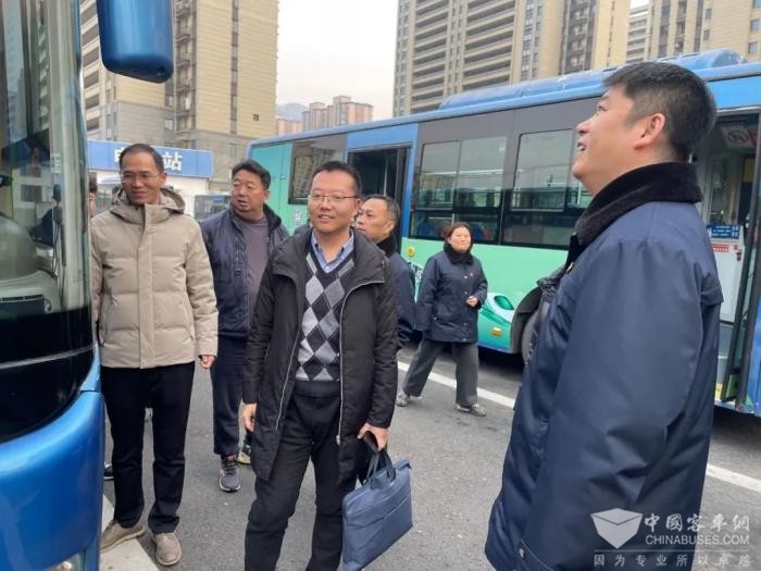 2025年1月21日,交通运输部督导组一行检查指导公交集团春运安全生产工作。省交通运输厅运管局四级调研员闫枫逸、市交通运输局副局长彭伟、市交通控股集团副总经理杨维洲参加,市公交集团总经理王学兵陪同。
