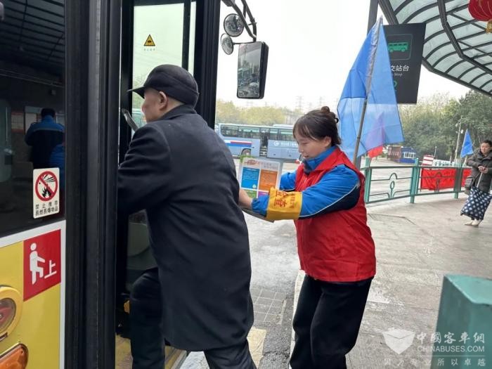 在金凤邮局公交站,志愿者引导乘客有序上下车,帮助乘客搬运行李,耐心解答乘客的各类咨询,发放交通安全宣传资料。部分志愿者走进公交车,为驾驶员送上温暖的姜茶,提醒驾驶员在忙碌的春运期间注意休息,确保行车安全。