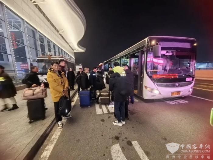 2025年1月24日晚,受暴雪影响,大量旅客滞留包头东河机场。市公交运输集团紧急调派车辆,完成旅客转运疏散任务。