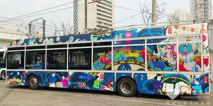 身披金山农民画的20路公交车
