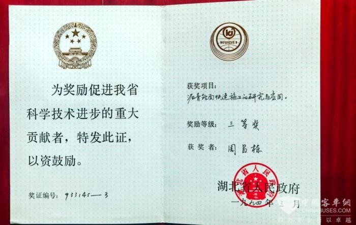2002年,在北京人民大会堂,周昌栋代表宜昌长江公路大桥指挥部,接受了国家颁发的鲁班奖。之后,大桥获得了全国土木工程技术创新大奖——詹天佑土木工程奖。