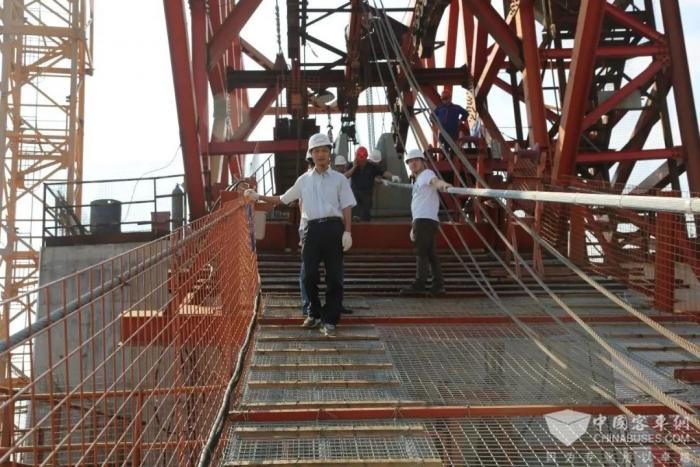 周昌栋(前排右二)在伍家岗大桥工地上 景卫东摄