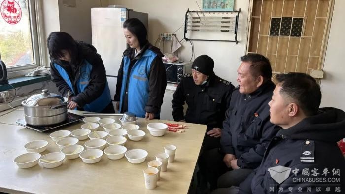 公交集团汽车二分公司台山车队驾驶员们早早来到南沙街道园中园社区,慰问孤寡老人和困难家庭。车队精心准备了满满一大箱元宵,送到居民手中。