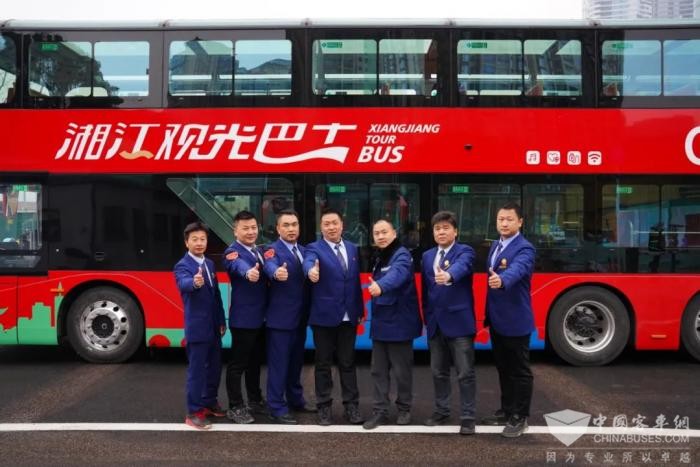 “乘客您好,欢迎乘坐湘江观光巴士,长沙公交竭诚为您服务!”试运营当天上午10点,驾驶员匡飞鸽站在等候发车巴士门前,热情迎接第一批游客。