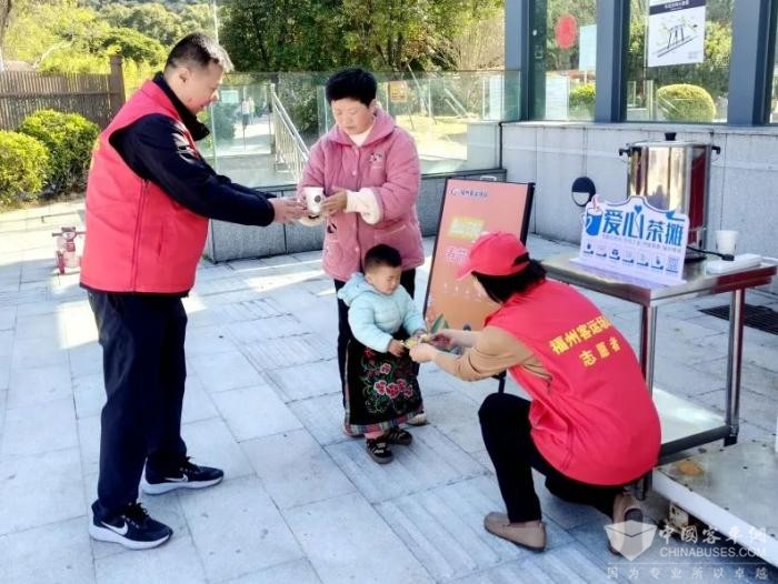 “爬完山能喝上一口热茶,真是太舒坦了!”春节期间,市民刘女士和家人在鼓山公交总站候车,此时场站内开设了爱心茶摊,站长李冰鑫正给乘客送上热茶。温情一幕不止发生在鼓山公交总站,城市客运场站公司所辖的公交仁德站、火车站北广场站、火车南站等9处工会驿站春运“不打烊”,开设“爱心茶摊”供应热茶、银耳汤等饮品。